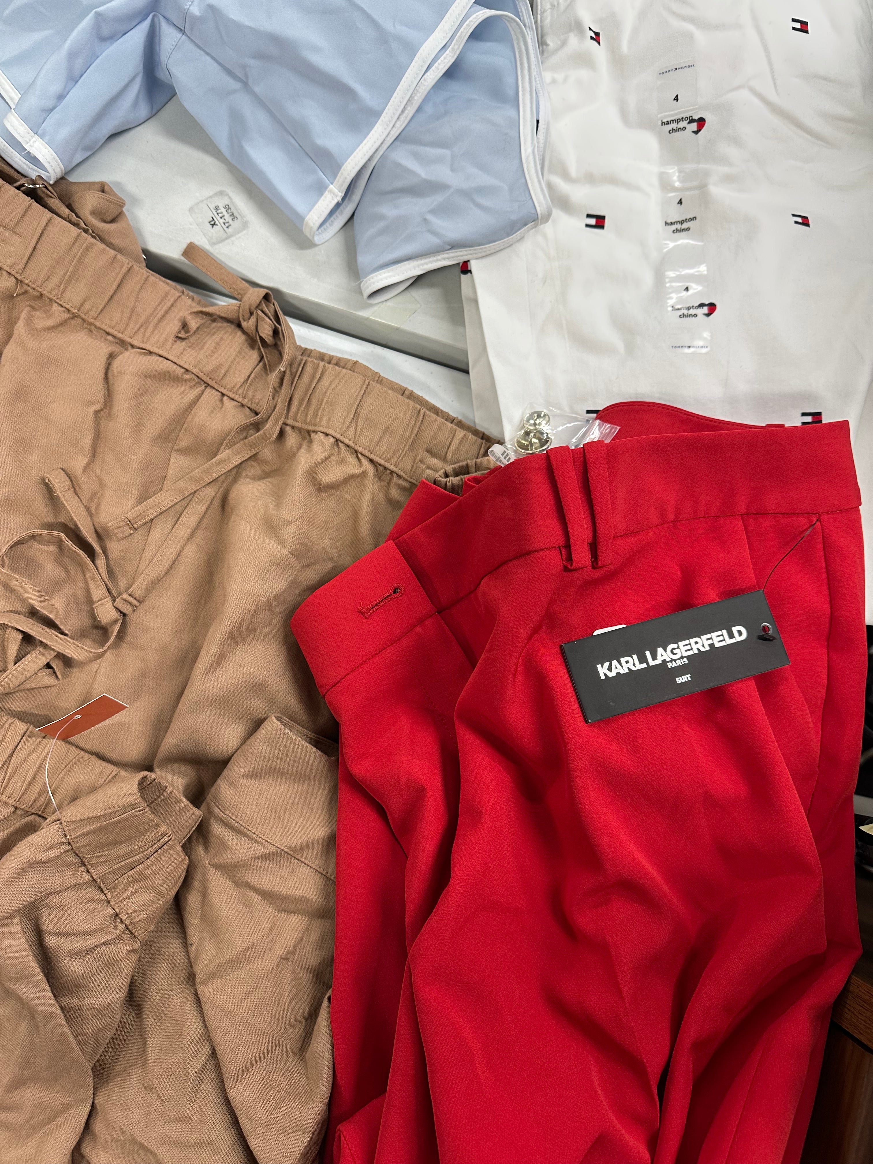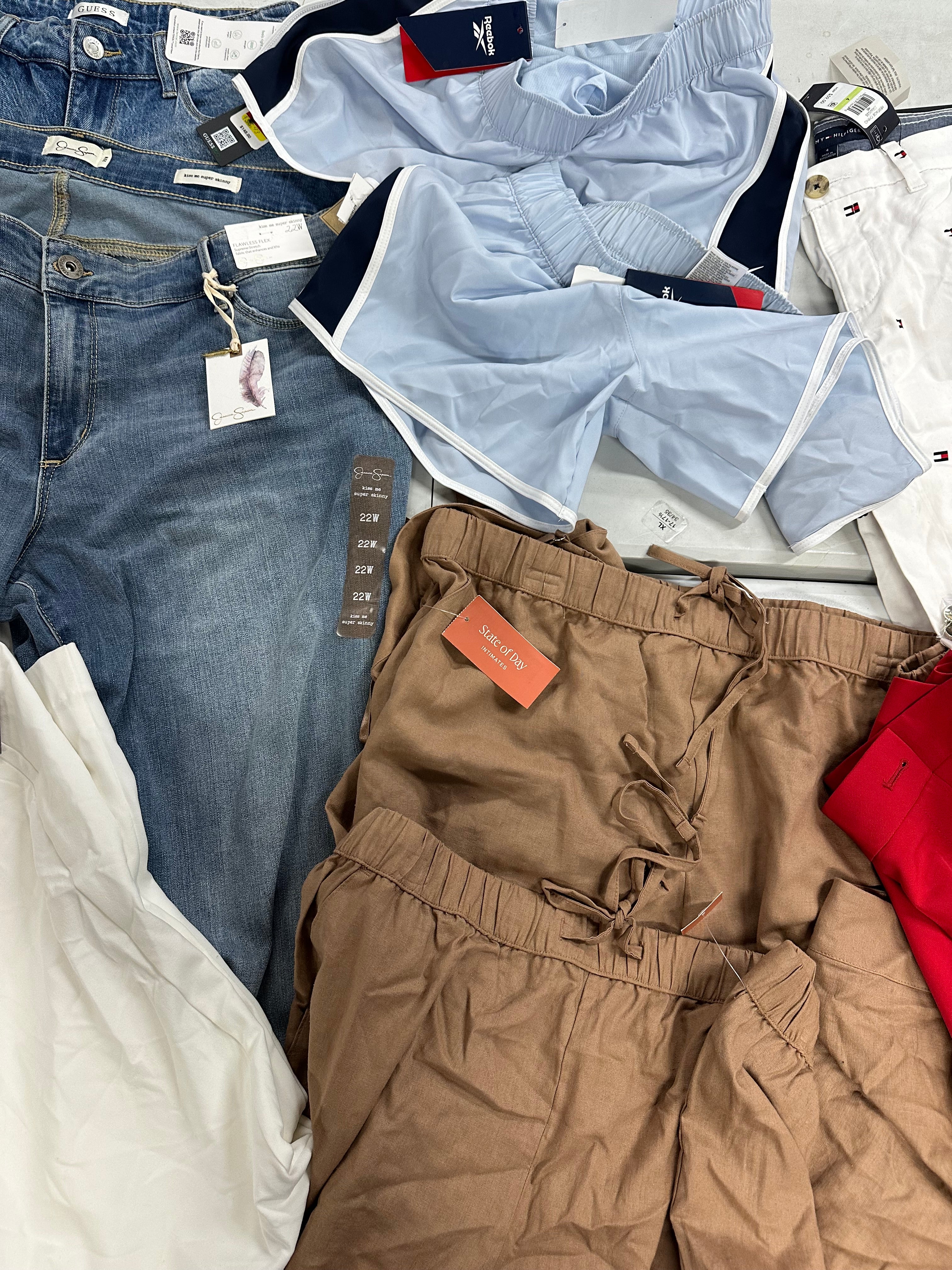 Women's Bottoms & Other Clothing Wholesale Lot, TOMMY HILFIGER, REEBOK, VINCE CAMUTO, GUESS, KARL LAGERFELD and more, 9 items, Shelf Pulls, MSRP $694