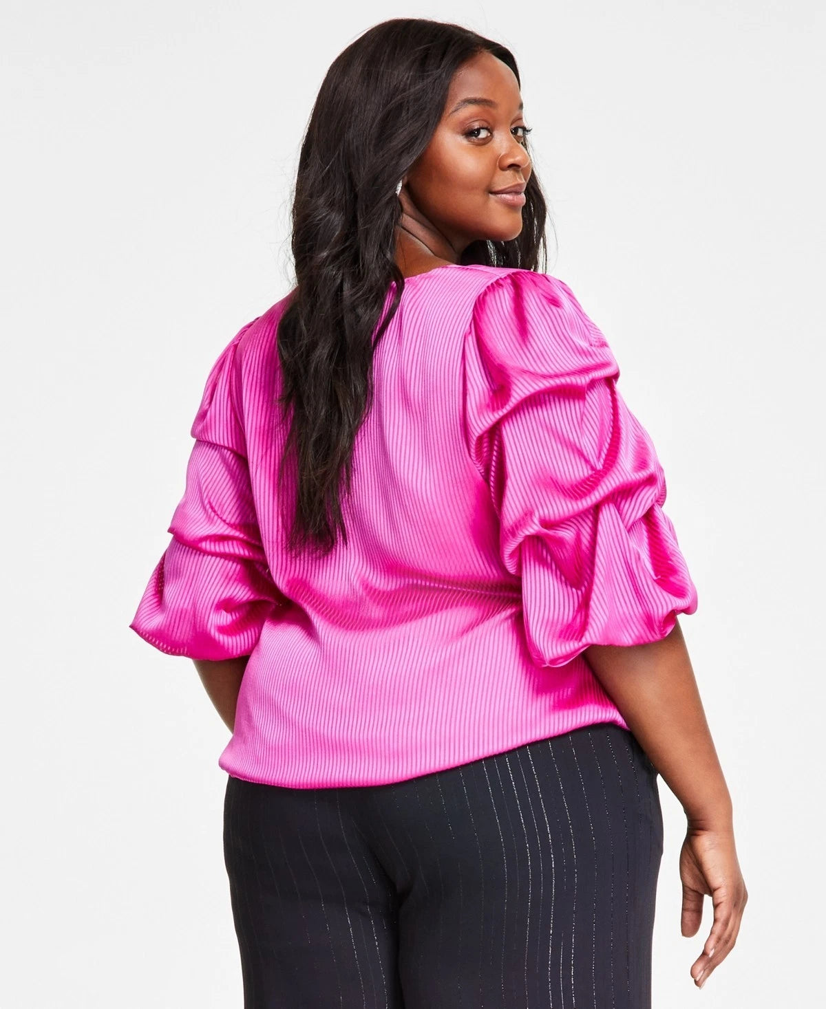 Not your average top: this plus size pick from Vince Camuto features shadow stripes and gorgeous bubble sleeves. ABOUT THE BRAND: Vince Camuto is a globally renowned brand that embodies European styling. Detailed craftsmanship across the line embraces current trends while maintaining a classic aesthetic.