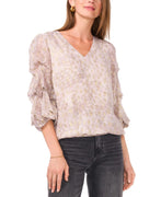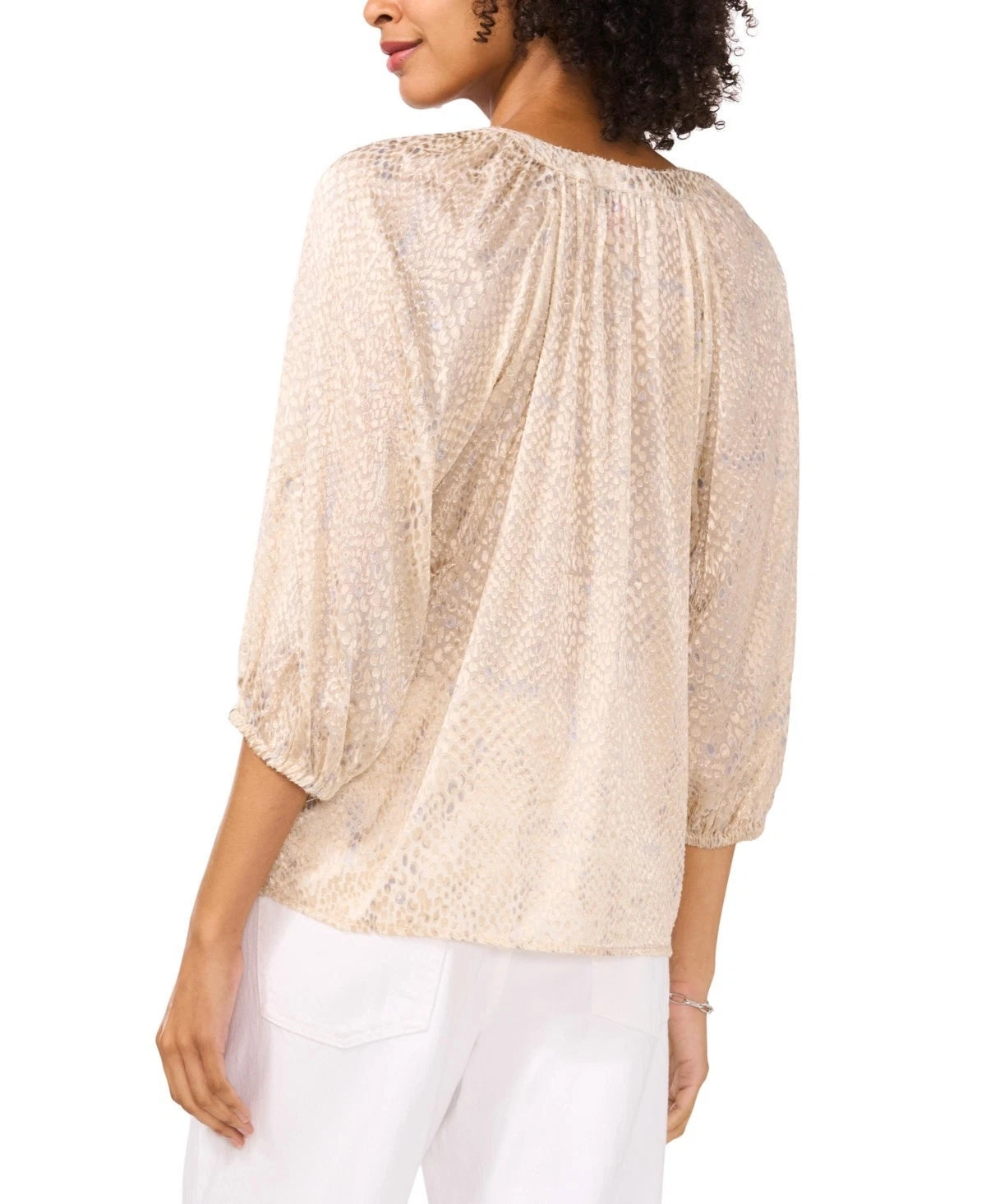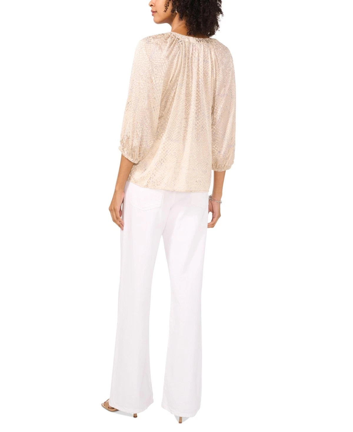 Vince Camuto Women's Printed Split-Neck 3/4 Raglan-Sleeve Top Beige Size S $89