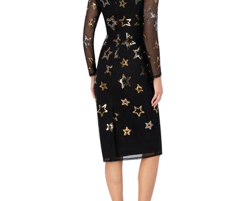 Vince Camuto Women's Sequined Stars Mesh Bodycon Dress Black Size 4 MSRP $178