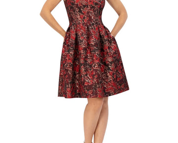 Vince Camuto Women's Sleeveless Jacquard Fit & Flare Dress Red Size 4 MSRP $188