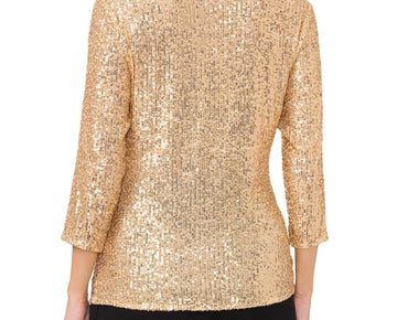 Vince Camuto Women's Sequined Cowlneck 3/4-Sleeve Top Gold Size XL MSRP $69