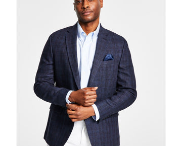 Bar III Men's Navy Windowpane Sport Coat Blazer Size 40L