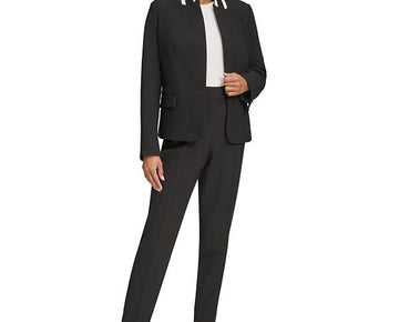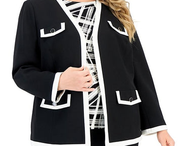 Kasper Plus Size 1X Tipped Collarless Open-Front Jacket Black $139