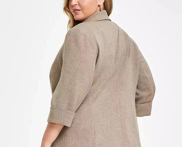 Kasper Plus Size 14W Zip-Pocket Cuffed 3/4-Sleeve Blazer Beige MSRP $129