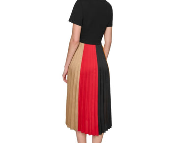 Karl Lagerfeld Paris Womens Colorblocked Pleated Dress Black Multi, Size 12