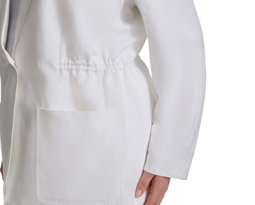 Calvin Klein updates a plus size blazer with a modern twist. An elasticized waist and patch pockets make this piece special.*Features** Imported** Peaked lapels; single button closure** Shoulder pads; elasticized...