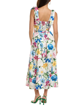 Michael Kors Foil-Print Smocked Peasant Dress Turquoise Blue Size S MSRP $125
