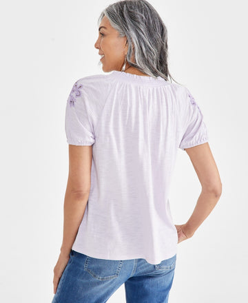 Michael Kors Foil-Print Smocked Peasant Dress Turquoise Blue Size S MSRP $125