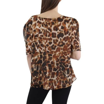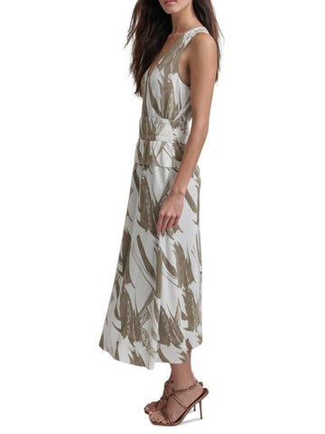 Michael Kors Foil-Print Smocked Peasant Dress Turquoise Blue Size S MSRP $125