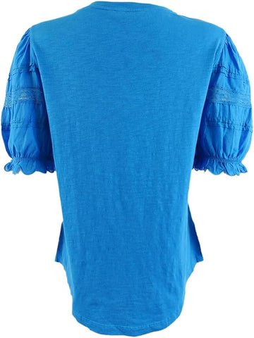 Michael Kors Foil-Print Smocked Peasant Dress Turquoise Blue Size S MSRP $125