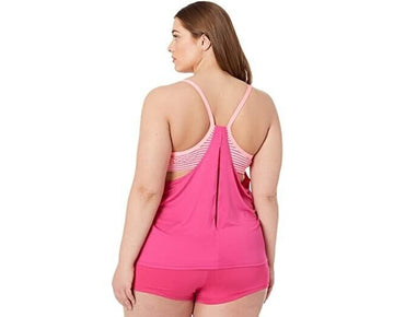 NIKE Plus Size Micro Stripe Layered Tankini Top Pink Size 3X MSRP $72