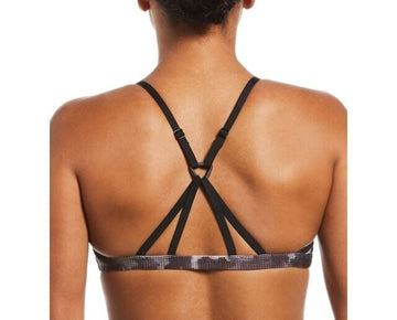 Nike Women Line Up Printed Cross-Back Long-Line Bikini Top Black Size S MSRP $64
