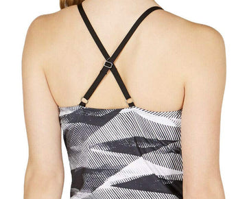 Nike Women's Line Up Printed Cross Back Tankini Top Black White Size S