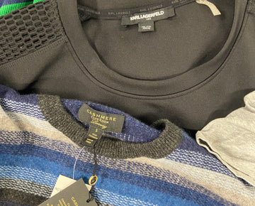 Men's Clothing Assorted Wholesale Lot, LUCKY BRAND, KARL LAGERFELD, CALVIN KLEIN, ORVIS, ELEVEN PARIS, 12 items, Shelf Pulls, MSRP $787