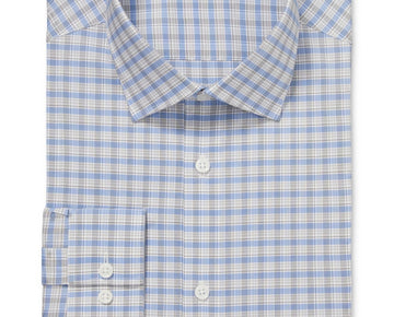 Michael Kors Comfort Stretch Check Dress Shirt Blue Size 18.5x36/37 MSRP $90