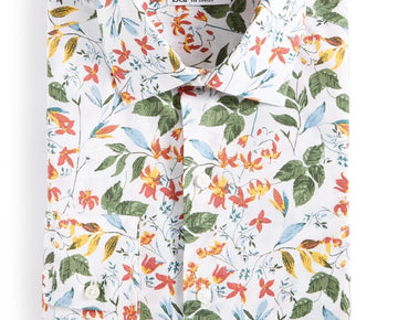 Bar III Slim-Fit Bird Floral Dress Shirt White Size 14/14.5 (S) MSRP $70