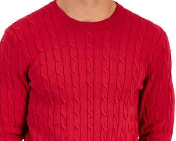 Club Room Men's Cable-Knit Cotton Warm Sweater Ablaze Red Size M