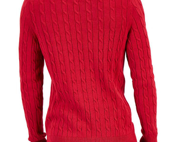 Club Room Men's Cable-Knit Cotton Winter Sweater Ablaze Red Size L MSRP $50