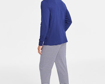 Family Pajamas Men’s Mix It Jolly Vibes Striped Pajamas Set, Navy, Size M
