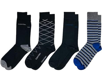 Calvin Klein Men's 4 Pack Multi Pattern Dress Crew Socks Black Size Regular
