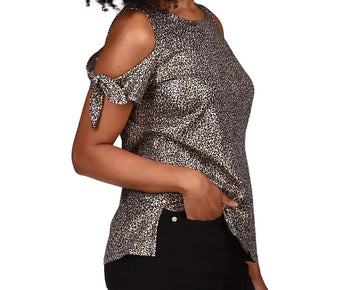 Michael Kors Foil Cold-Shoulder T-Shirt Gold Black Size M MSRP $58
