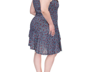 MICHAEL KORS Printed Flounce Dress Blue Plus Size 2X MSRP $110