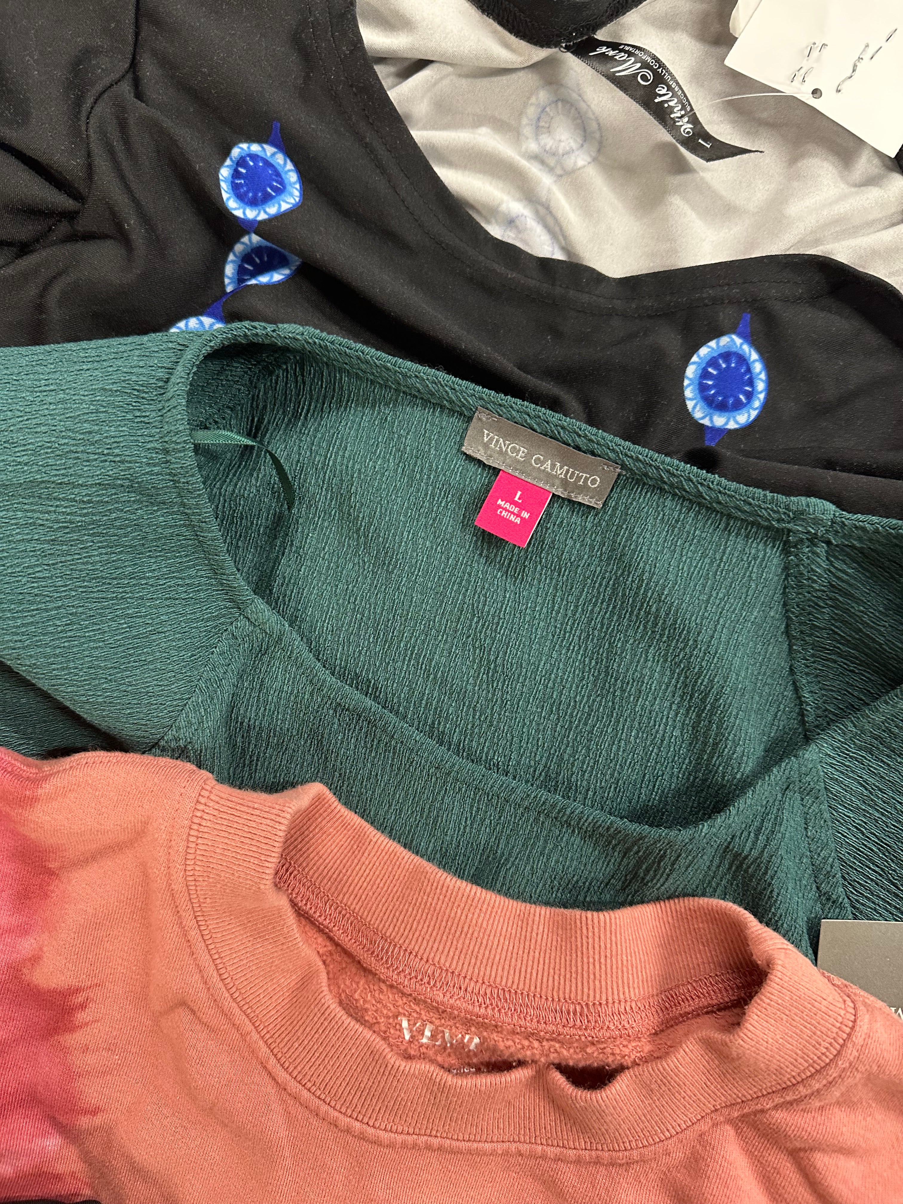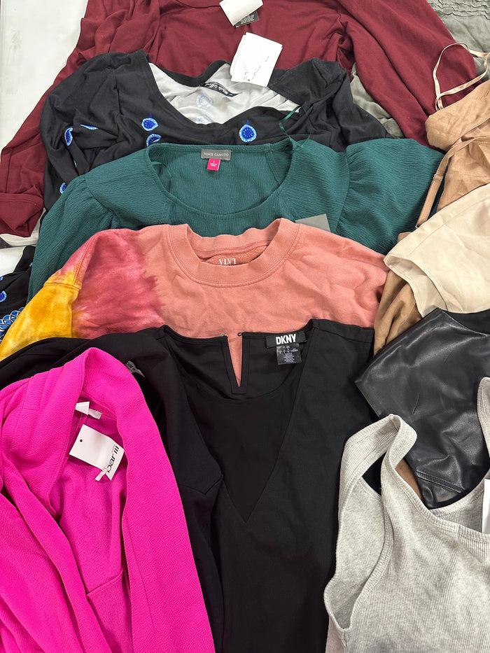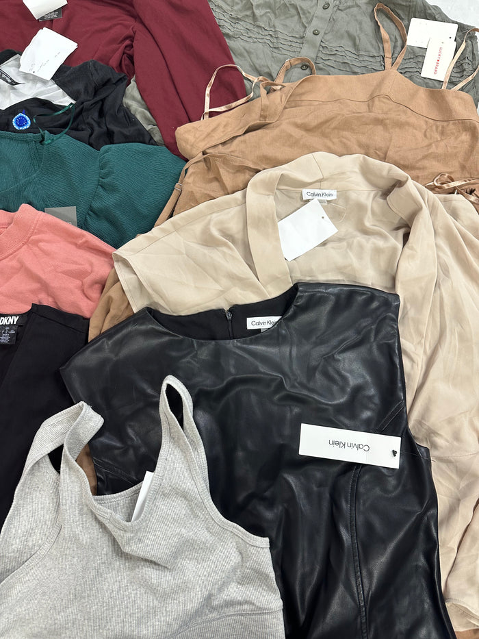 Women's Clothing Tops Wholesale Lot, LUCKY BRAND, CALVIN KLEIN, DKNY, HANES, WHITE MARK and more, 13 items, Shelf Pulls, MSRP $722