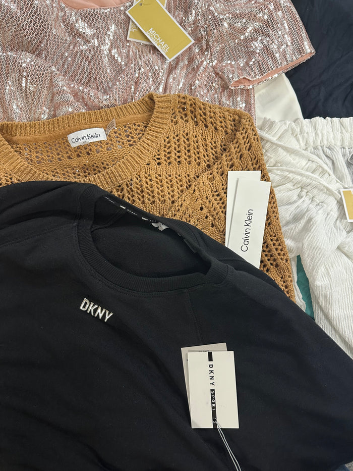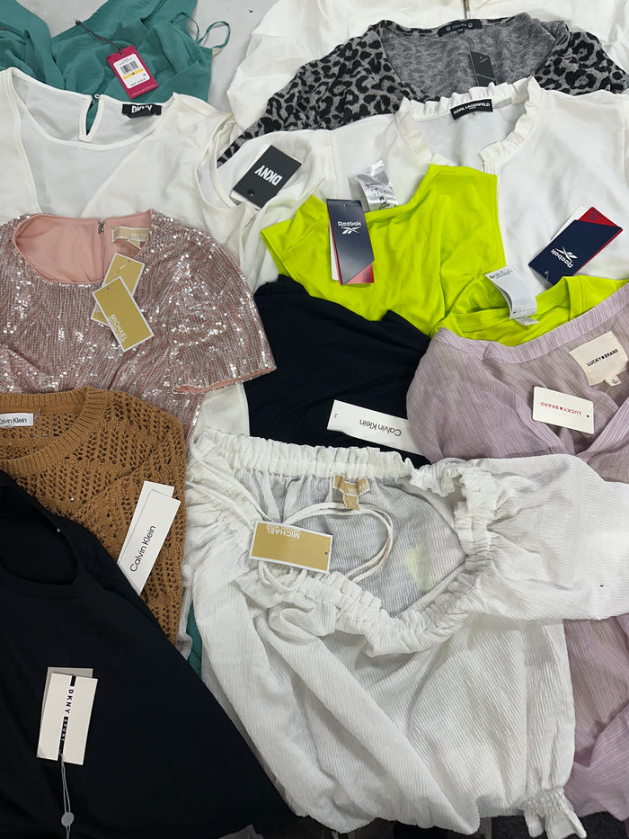 Women's Clothing Tops Wholesale Lot, MICHAEL KORS, LUCKY BRAND, CALVIN KLEIN, DKNY, REEBOK and more, 14 items, Shelf Pulls, MSRP $859