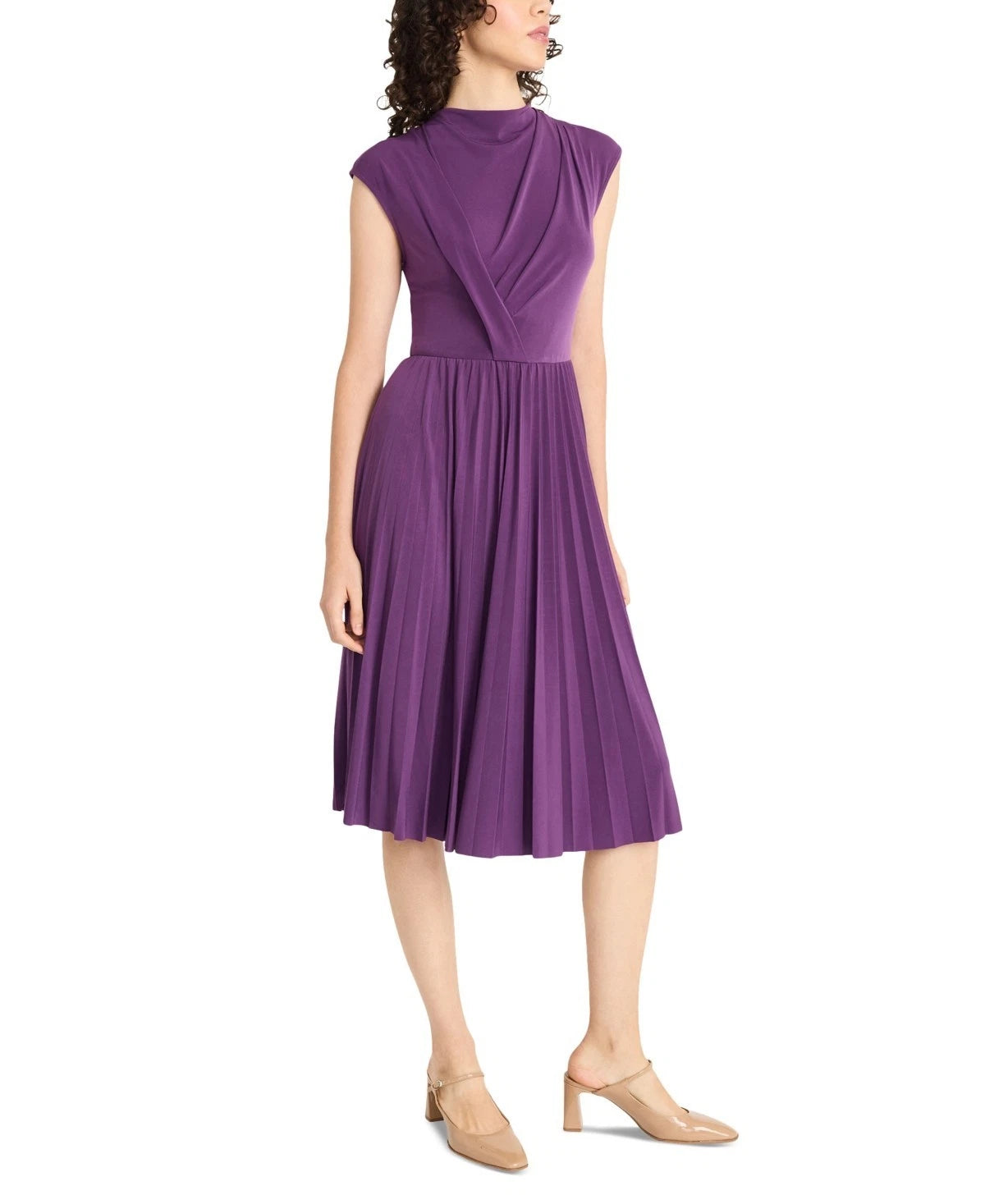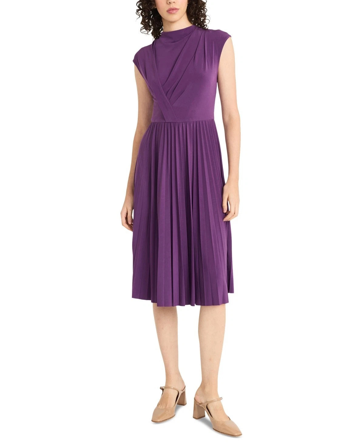 Maggy London Women's Sleeveless Pleated Midi Dress Purple Size 14 MSRP $138