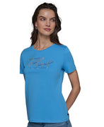 KARL LAGERFELD PARIS Women's Embellished-Logo T-Shirt Blue Size S MSRP $59