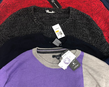 Men's Clothing Sweater Wholesale Lot, Buffalo Jeans, Club Room, INC, 9 Units, Shelf Pulls, MSRP $596.49