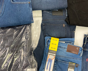 Men's Clothing Jeans Wholesale Lot, LUCKY BRAND, CALVIN KLEIN, BUFFALO and more, 10 items, Shelf Pulls, MSRP $814
