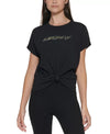 Dkny Sport Women's Logo Knotted Cotton T-Shirt Black Size M
