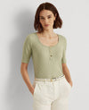 LAUREN RALPH LAUREN Elbow-Sleeve Henley Top Ranch Sage Green Size XL MSRP $70