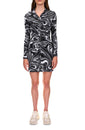 MICHAEL KORS Printed Crinkle Off-The-Shoulder Mini Dress Black Size XL MSRP $140