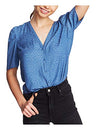 1. STATE Womens Blue Animal Print Pouf V Neck Blouse Wear to Work Top Size L