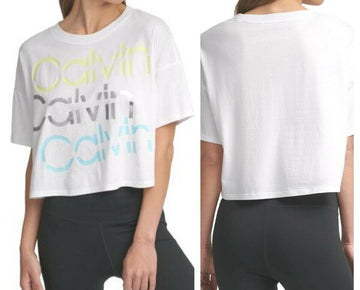 Calvin Klein Performance Sliced Logo Cropped TShirt Womens White Size L MSRP $40