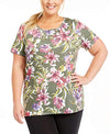 Thalia Sodi Womens Plus Floral Print Keyhole Top Green 2X