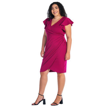 24Seven Comfort Apparel Ruffle Knee Dress Pink Magenta Plus Size 1X MSRP $97