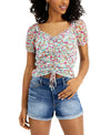 Crave Fame Juniors' Printed Ruched Mesh Top Womens blue Size XS MSRP $29