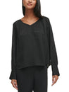 Calvin Klein Womens V-Neck Textured Blouse Black Size S