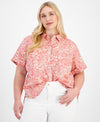 Tommy Hilfiger Cotton Cuffed-Sleeve Camp Shirt Mineral Red Plus Size 0X MSRP $60