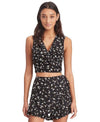 Tommy Jeans Women's Floral-Print Cropped Ruffled Top BLACK Size M MSRP $70