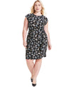 Kasper Plus Size Abstract-Print Cap-Sleeve Dress Black Size 2X MSRP $99