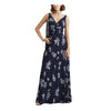 Lauren Ralph Lauren Floral Crinkled Georgette Gown Navy Blue Size 12 MSRP $260