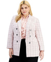 Bar III Plus Size Tweed Open-Front Blazer Pink Check Size 2X MSRP $139