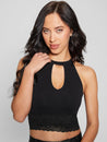 GUESS Women's Lila Cutout Seamless Ribbed Lace-Trim Sweater Black Size S
