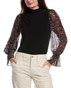 CeCe womens Mixed Media Mock Neck Top, Size S Black MSRP $69