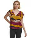 Calvin Klein Womens Printed Short-Sleeve Red Yellow Size XS MSRP $70